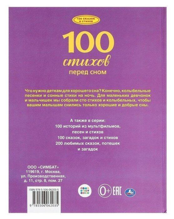 Книга 100 стихов перед сном (Надсон Семен Яковлевич; Исаковский Михаил Васильевич; Лермонтов Михаил Юрьевич; Бельский Владимир Иванович; Бальмонт Константин Дмитриевич; Чарская Лидия Алексеевна; Лохвицкая Мирра Александровна; Пляцковский Михаил Спартакович; Черный Саша; Минаев Дмитрий Дмитриевич; Майков Аполлон Николаевич; Плещеев Алексей Николаевич; Лебедев-Кумач Василий Иванович; Александрова Зинаида Николаевна; Свириденко София Александровна; Гладков Александр Константинович; Фет Афанасий Афанасьевич; Кудашева Раиса Адамовна; Яковлев Юрий Яковлевич; Аким Яков Лазаревич; Энтин Юрий Сергеевич; Федоров Александр Митрофанович; Пушкин Александр Сергеевич; Ладыженский Владимир Николаевич; Цветаева Марина Ивановна; Дружинина Марина Владимировна; Степанов Владимир Александрович), 2021