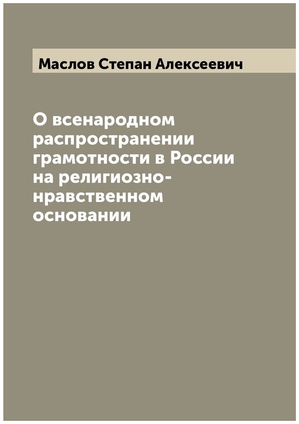 Книга О всенародном распространении грамотности в России на религиозно-нравственном осн... (Маслов Степан Алексеевич), 2022