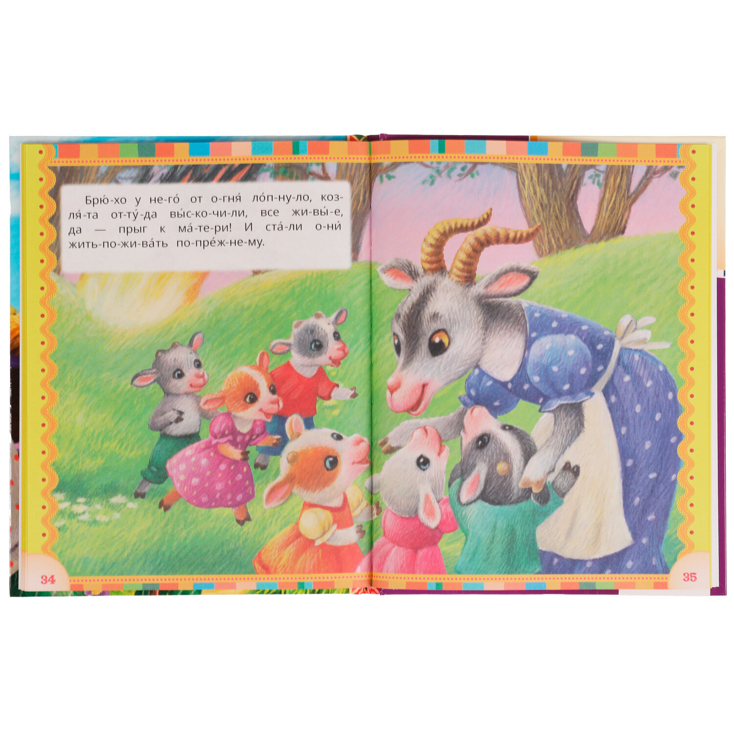 В книге собраны лучшие сказки по обучению чтению: «Гуси-лебеди» и «Волк и козлята» в обработке А. Н. Толстого, «Теремок» по мотивам сказки «Терем мухи» в обработке А. Н. Афанасьева, «Лиса и гуси» в обработке К. Д. Ушинского, «Храбрый заяц» по мотивам сказки Д. Н. Мамина-Сибиряка. Большие буквы и слова с ударениями помогут начинающему читателю с лёгкостью справиться с книгой от начала до конца. Благодаря компактным размерам книгу удобно брать с собой в дорогу.