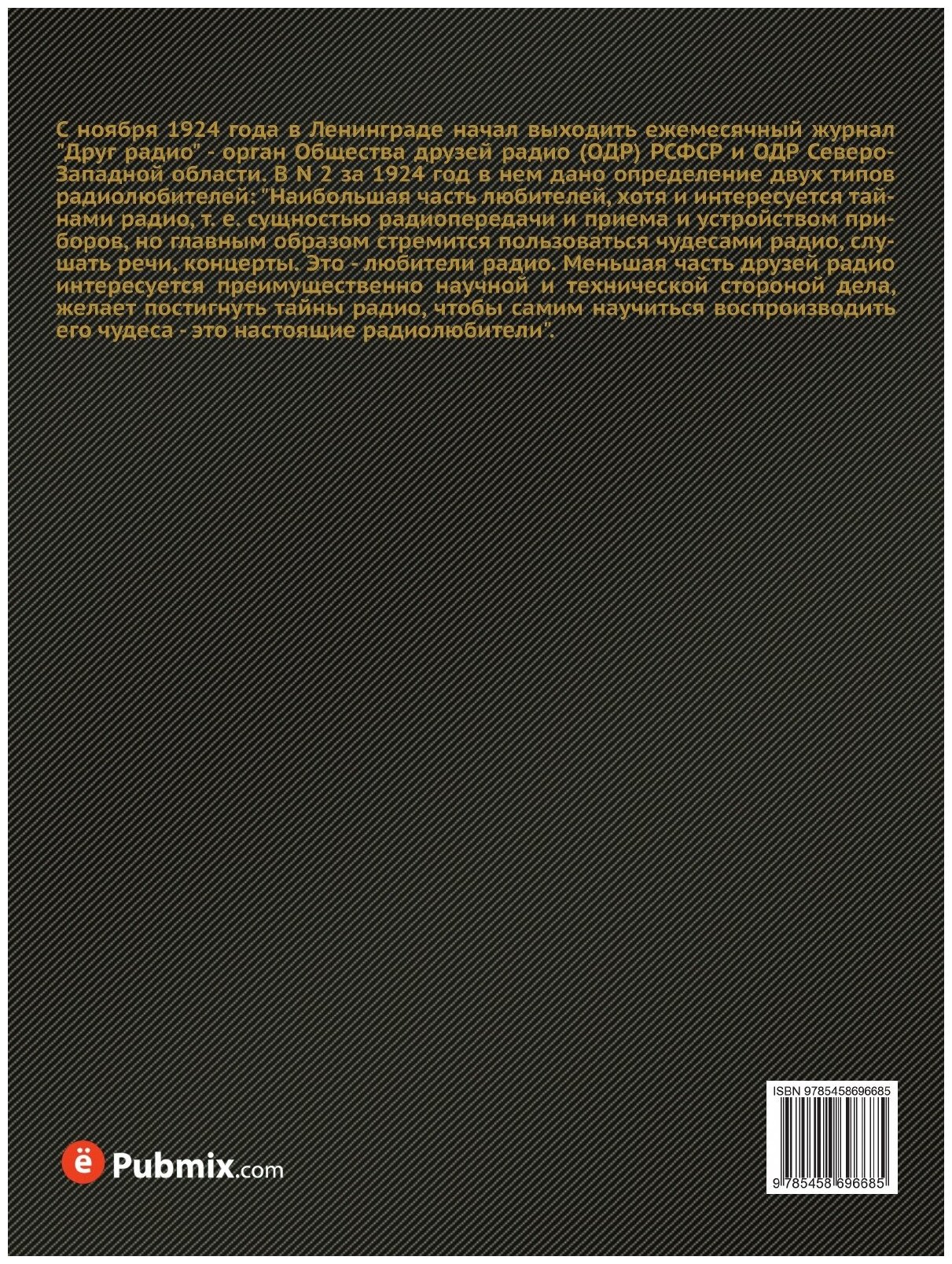 Эта книга — репринт оригинального издания (издательство "Ленинград: Издательство журнала "Радио"", 1925 год), созданный на основе электронной копии высокого разрешения, которую очистили и обработали вручную, сохранив структуру и орфографию оригинального издания. Редкие, забытые и малоизвестные книги, изданные с петровских времен до наших дней, вновь доступны в виде печатных книг.