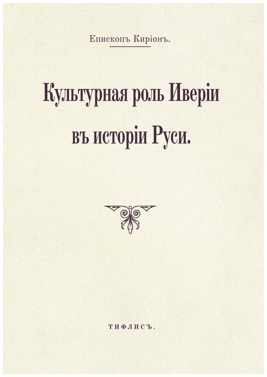 Восстановленное редкое издание: Культурная роль Иверии в истории Руси. Автор: Епископ Кирион (Садзагелов, Г.И.)