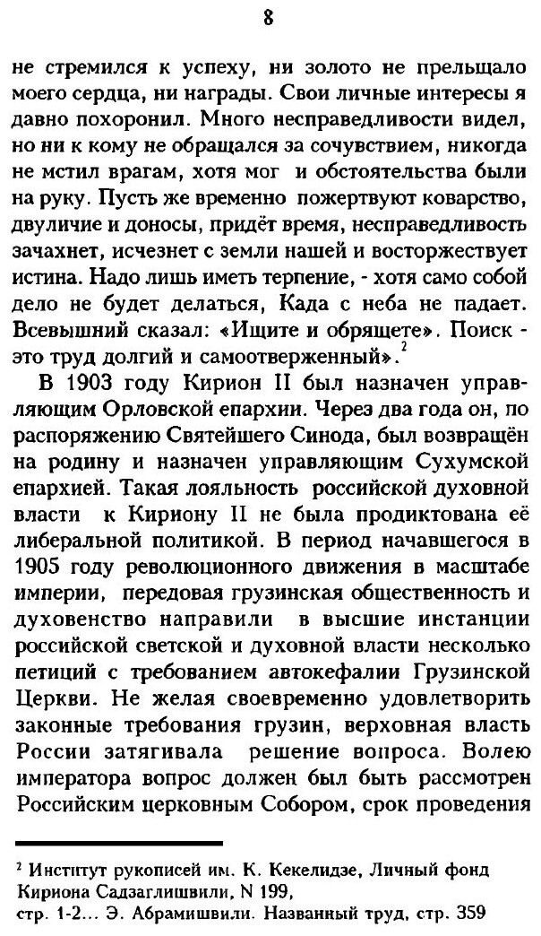 Сочинение знаменитого грузинского историка и религиозного деятеля, первого католикоса-патриарха Грузии после провозглашения автокефалии Грузинской православной церкви Кириона II (в миру - Георгий Иеронимович Садзаглишвили (1855-1918).