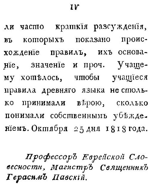 Книга Краткая Еврейская Грамматика для Обучающихся Священному Языку В Духовных Училищах (Павский Герасим Петрович)