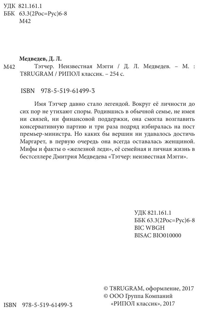 Книга Тэтчер Неизвестная Мэгги (Медведев Дмитрий Львович), 2018