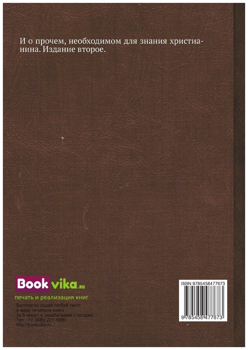 Эта книга - репринт оригинального издания (издательство "И. Ефимов", 1906 год), созданный на основе электронной копии высокого разрешения, которую очистили и обработали вручную, сохранив структуру и орфографию оригинального издания. Редкие, забытые и малоизвестные книги, изданные с петровских времен до наших дней, вновь доступны в виде печатных книг.И о прочем, необходимом для знания христианина. Издание второе.Издательство ЁЁ МедиаМягкий переплетОбъем - 58 стр.Формат - 148x210 мм.ISBN 978-5-458-47767-3Год издания: 2012