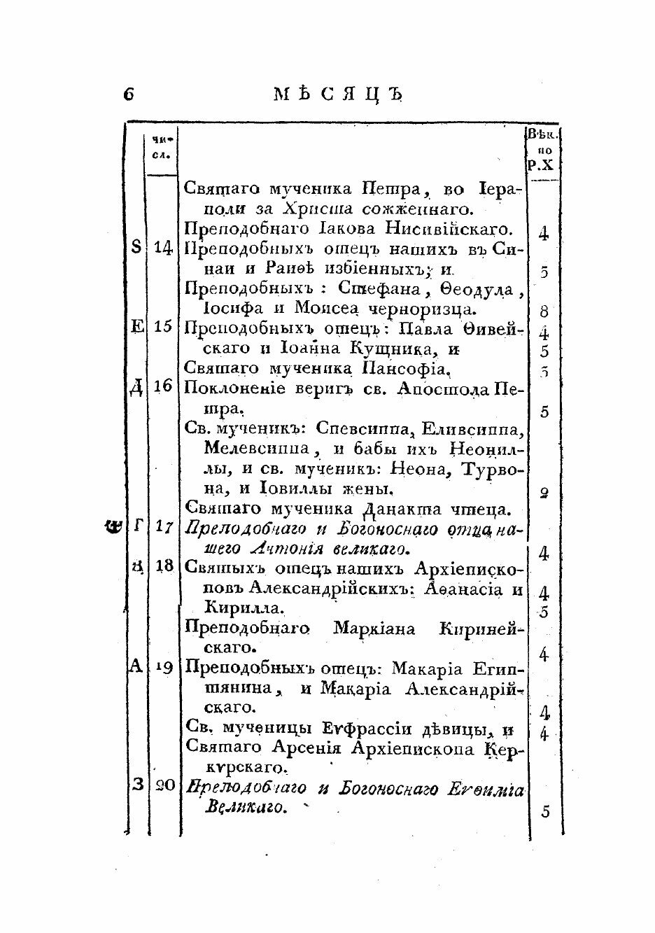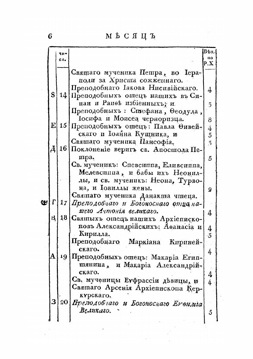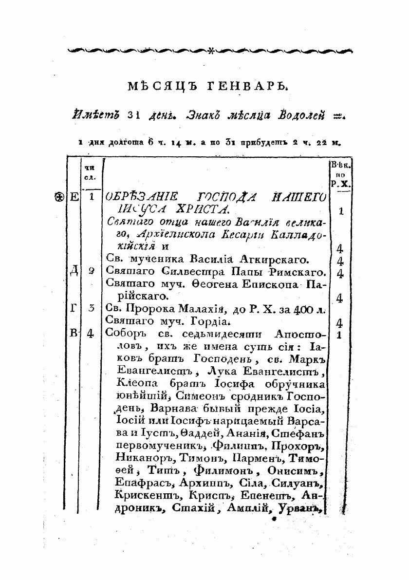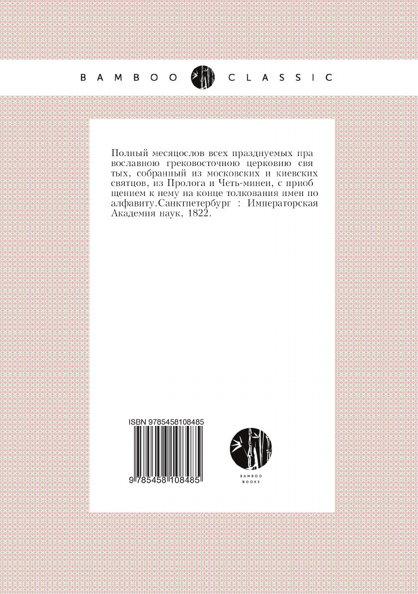 Полный месяцослов всех празднуемых православною грековосточною церковию святых, собранный из московских и киевских святцов, из Пролога и Четь-минеи, с приобщением к нему на конце толкования имен по алфавиту.Санктпетербург : Императорская Академия наук, 1822.