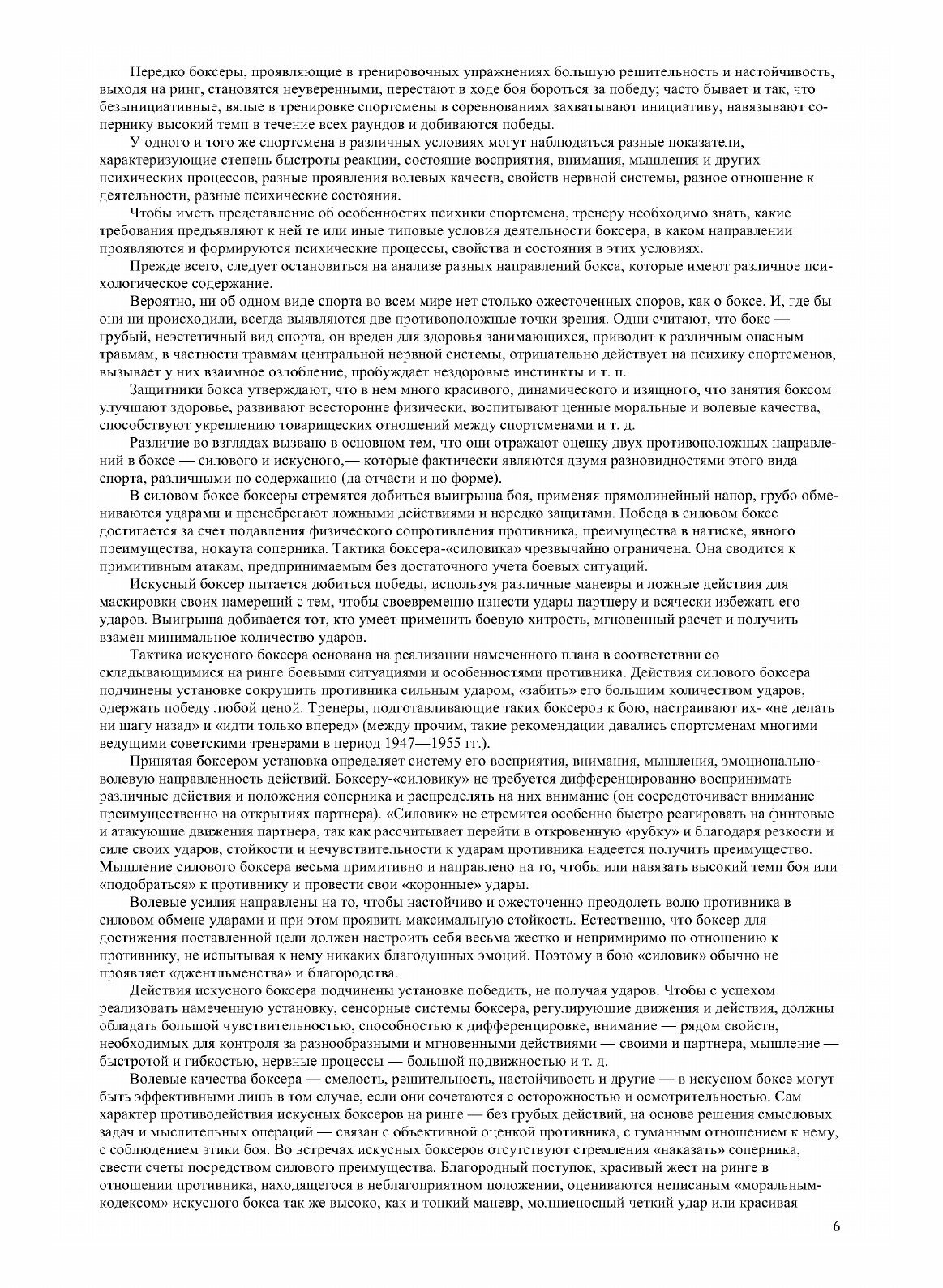 В настоящее время в разных видах спорта все большее значение приобретает психологическая подготовка. Однако у тренеров, методистов и спортсменов еще нет установившегося общего мнения о ее содержании и методах. Некоторые ставят знак равенства между психологической и морально-волевой подготовкой, другие считают, что психологическая подготовка может рассматриваться только в связи с предстоящим соревнованием, кое-кто сводит ее к регуляции и саморегуляции эмоционального состояния непосредственно перед выступлением. Нет единой точки зрения и на психологическую подготовку спортсмена в боксе, виде спорта, где роль «психического фактора» особенно велика.