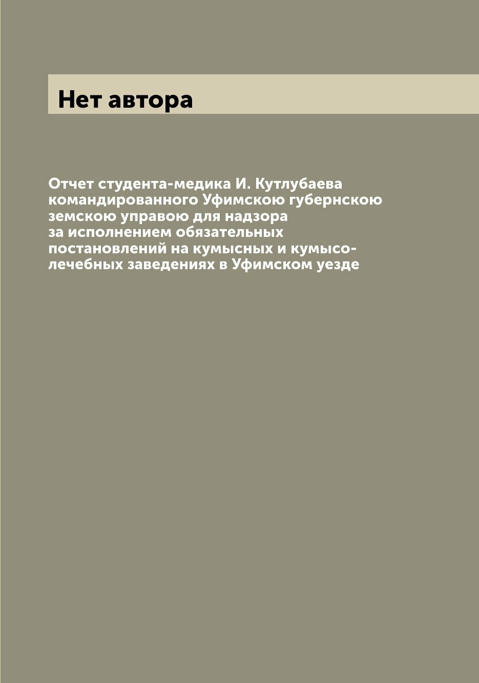 Книга Отчет студента-медика И. Кутлубаева командированного Уфимскою губернскою земскою ... (без автора), 2022