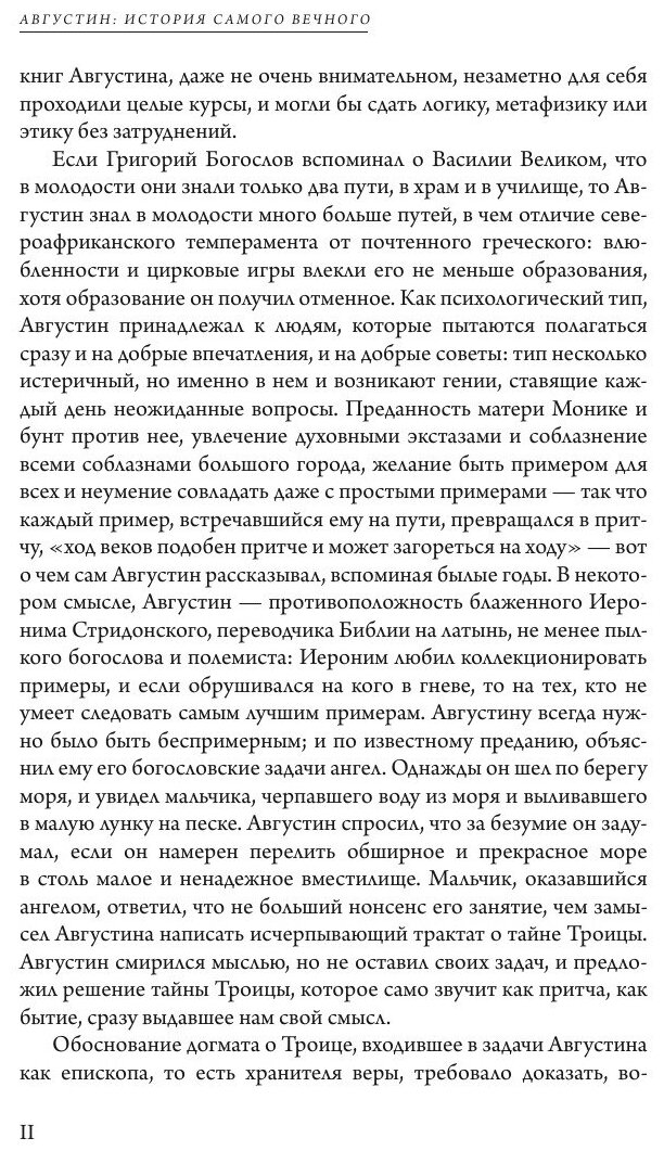 Читателю предлагается 2-е (исправленное) издание полного перевода трактата "О Троице" выдающегося христианского мыслителя св. Аврелия Августина (Блаженного) (354-430 от Р.Х.). Этот труд по своему значению стоит в одном ряду с такими его сочинениями, как "Исповедь" и "О граде Божием", и посвящен систематическому изложению доктрины, в которой Августин видел основу христианского вероучения. Начиная с экзегетики текстов Святого Писания, Августин отстаивает догмат троичности с философских позиций, используя аналогии с миром природы и в особенности с формами деятельности человеческого ума.Трактат "О Троице" - образец рассуждения о божественных началах бытия, соединяющий истолкование Библии, психологию и точные суждения философии. Трактат Августина послужил образцом для психологического обсуждения метафизических представлений и для исследования применения общих положений для понимания истории.Чтение трактата важно для всех, интересующихся богословием и классической философией, оно лучше всего позволяет понять европейскую культуру мышления о самых важных вопросах бытия.Рекомендовано Издательским советом РПЦ.