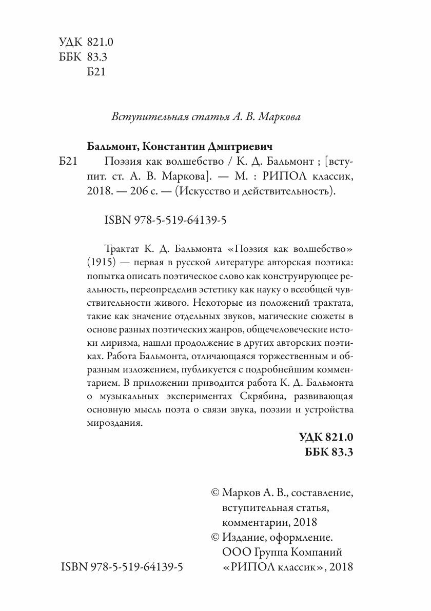 Книга Поэзия как волшебство (Бальмонт Константин Дмитриевич), 2018