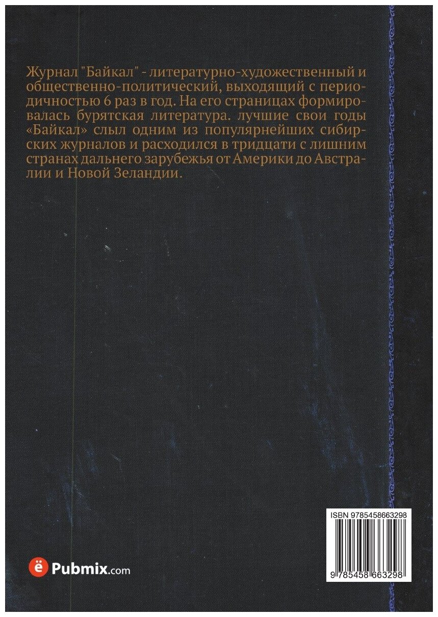 Журнал "Байкал" - литературно-художественный и общественно-политический, выходящий с периодичностью 6 раз в год. На его страницах формировалась бурятская литература. лучшие свои годы «Байкал» слыл одним из популярнейших сибирских журналов и расходился в тридцати с лишним странах дальнего зарубежья от Америки до Австралии и Новой Зеландии.