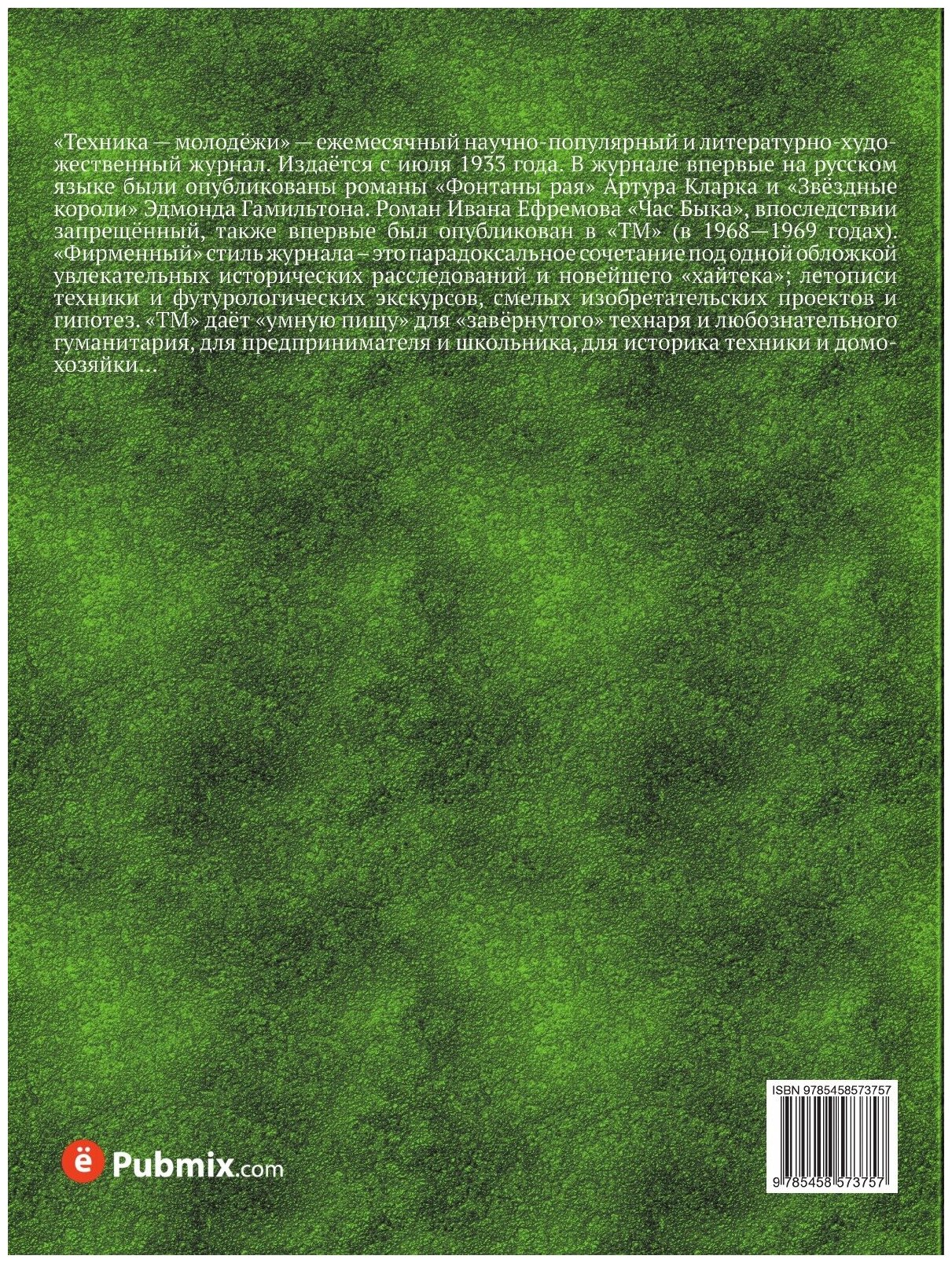 «Техника — молодёжи» — ежемесячный научно-популярный и литературно-художественный журнал. Издаётся с июля 1933 года. В журнале впервые на русском языке были опубликованы романы «Фонтаны рая» Артура Кларка и «Звёздные короли» Эдмонда Гамильтона. Роман Ивана Ефремова «Час Быка», впоследствии запрещённый, также впервые был опубликован в «ТМ» (в 1968—1969 годах). «Фирменный» стиль журнала – это парадоксальное сочетание под одной обложкой увлекательных исторических расследований и новейшего «хайтека»; летописи техники и футурологических экскурсов, смелых изобретательских проектов и гипотез. «ТМ» даёт «умную пищу» для «завёрнутого» технаря и любознательного гуманитария, для предпринимателя и школьника, для историка техники и домохозяйки...