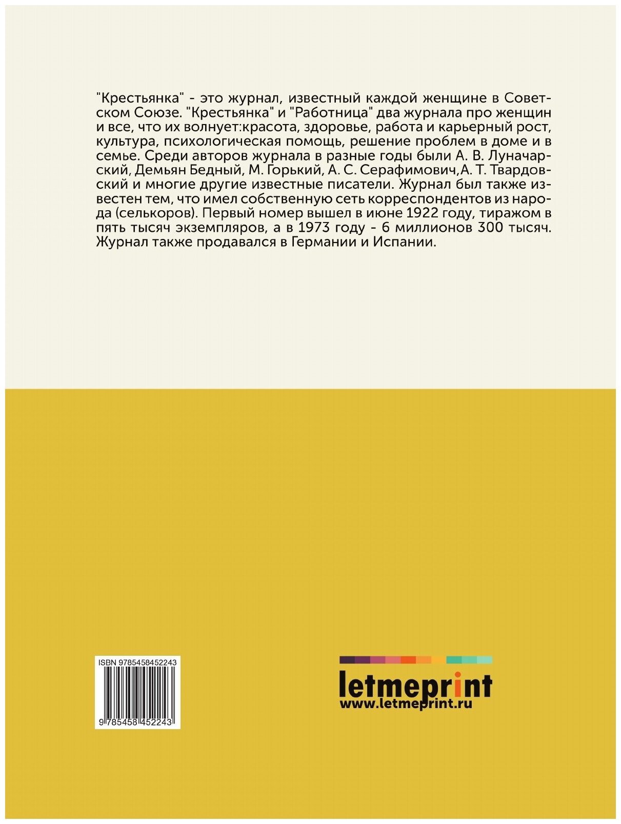 "Крестьянка" - это журнал, известный каждой женщине в Советском Союзе. "Крестьянка" и "Работница" два журнала про женщин и все, что их волнует:красота, здоровье, работа и карьерный рост, культура, психологическая помощь, решение проблем в доме и в семье. Среди авторов журнала в разные годы были А. В. Луначарский, Демьян Бедный, М. Горький, А. С. Серафимович,А. Т. Твардовский и многие другие известные писатели. Журнал был также известен тем, что имел собственную сеть корреспондентов из народа (селькоров). Первый номер вышел в июне 1922 году, тиражом в пять тысяч экземпляров, а в 1973 году - 6 миллионов 300 тысяч. Журнал также продавался в Германии и Испании.