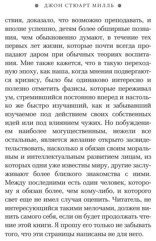 История моей жизни и убеждений". Джона Стюарта Милля в наше время назвали бы вундеркиндом - в три года он начал учить классический греческий язык, в двенадцать лет приступил к изучению высшей математики, химии, логики и политической экономии, к четырнадцати годам образование будущего философа сочли законченным.