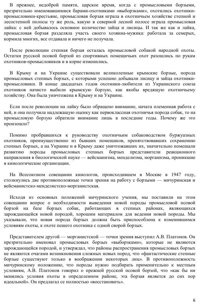 В длинном списке литературы по охотничьему собаководству нет ни одного издания о русских промысловых борзых, ни одного отчета о полевых испытаниях борзых собак по вольному зверю. Издание этой первой работы лишь частично заполняет существовавший пробел. О русской промысловой борзой, являющейся гордостью нашего отечественного собаководства, должно быть создано много работ....
