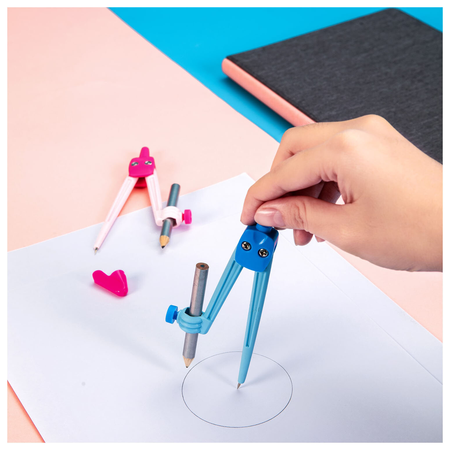 Циркуль Deli с карандашом в пластиковом боксе. Циркуль изготовлен из прочного пластика PS с нейлоном. Прочный фиксатор, позволяет надежно удерживать карандаш. Для безопасности ребенка, циркуль оснащен защитным наконечником. Циркуль небольшой, его легко носить с собой. Для удобства хранения и переноски, циркуль помещен в прочную пластиковую коробку из полипропилена. Циркуль доступен в синем и розовом цветах.