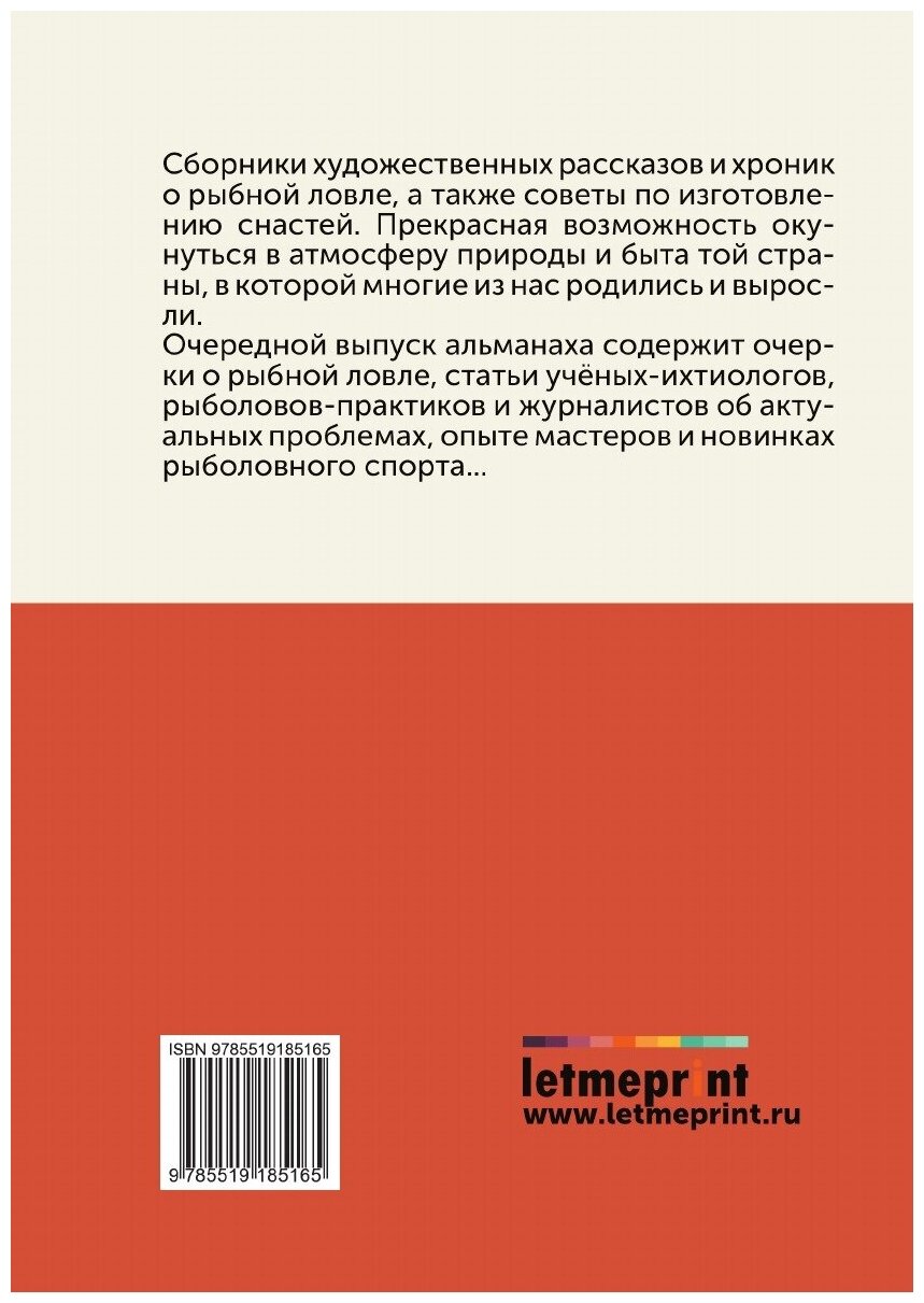 Очередной выпуск альманаха содержит очерки о рыбной ловле, статьи учёных-ихтиологов, рыболовов-практиков и журналистов об актуальных проблемах, опыте мастеров и новинках рыболовного спорта...