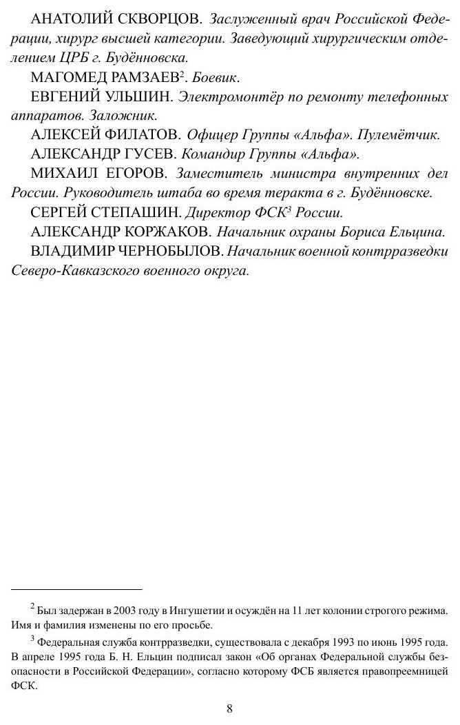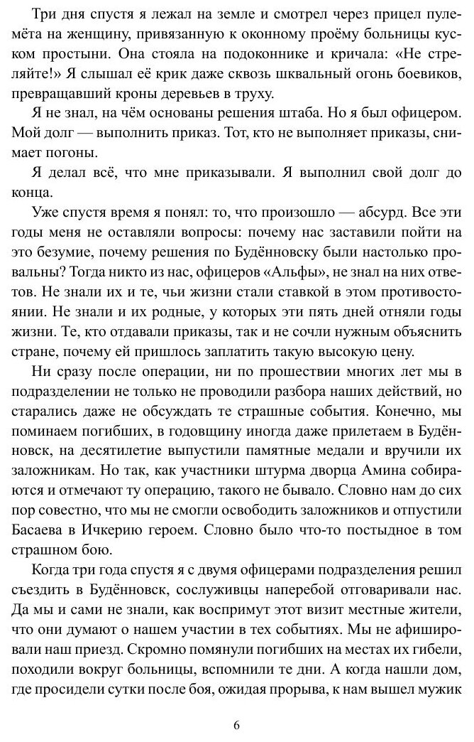Захват больницы в Будённовске в 1995 году стал самым крупным терактом в мире. В заложниках оказалось почти 2000 мирных граждан, среди которых дети, женщины, старики… Они гибли от пуль и осколков, сходили с ума от страха. Итог — 129 погибших, 415 раненых. Впервые террористы выдвинули политические требования и впервые наше государство уступило. Автор — офицер спецподразделения «Альфа» и участник тех событий — провёл собственное расследование. Он встречался с заложниками, оперативниками и боевиками. Оказалось, существовал план, позволявший избежать трагического исхода. Почему был выбран другой путь и кто в ответе за трагедию Будённовска? Ответы — на страницах этой книги.