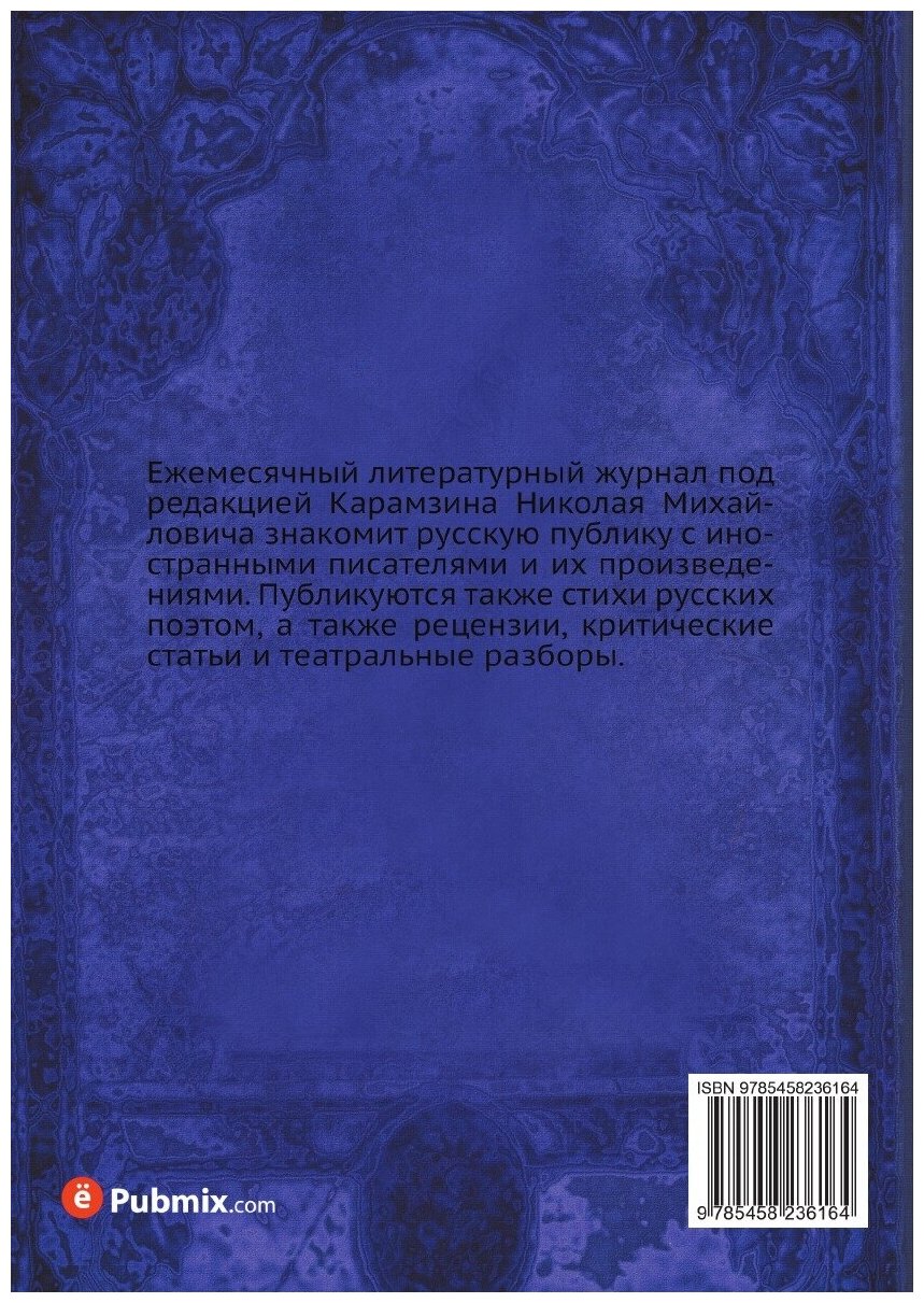 Ежемесячный литературный журнал под редакцией Карамзина Николая Михайловича знакомит русскую публику с иностранными писателями и их произведениями. Публикуются также стихи русских поэтом, а также рецензии, критические статьи и театральные разборы.