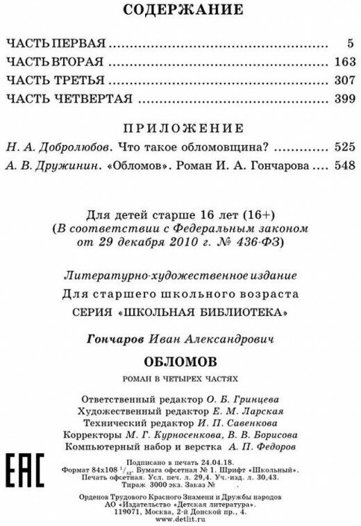 Книга: Книга Обломов (Гончаров Иван Александрович), 2020