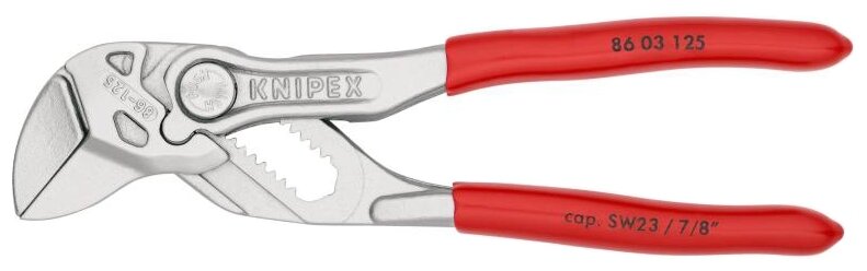 Миниатюрный цанговый ключ KNIPEX - кованые хромированные клещи из хромованадиевой стали, закалённые в масле, оснащенные пластиковыми чехлами на рукоятках. Изделие предназначается для захвата, фиксации, опрессовки и гибки деталей. Модель идеальна для работы в труднодоступных местах с мелкими резьбовыми соединениями. Прекрасно подходят для точной механики. Благодаря регулируемому зеву такой инструмент заменит собой целый набор обычных гаечных ключей (и метрических, и дюймовых). Безлюфтовое прилегание рабочих поверхностей к крепежу позволяет исключить вероятность повреждения его граней.