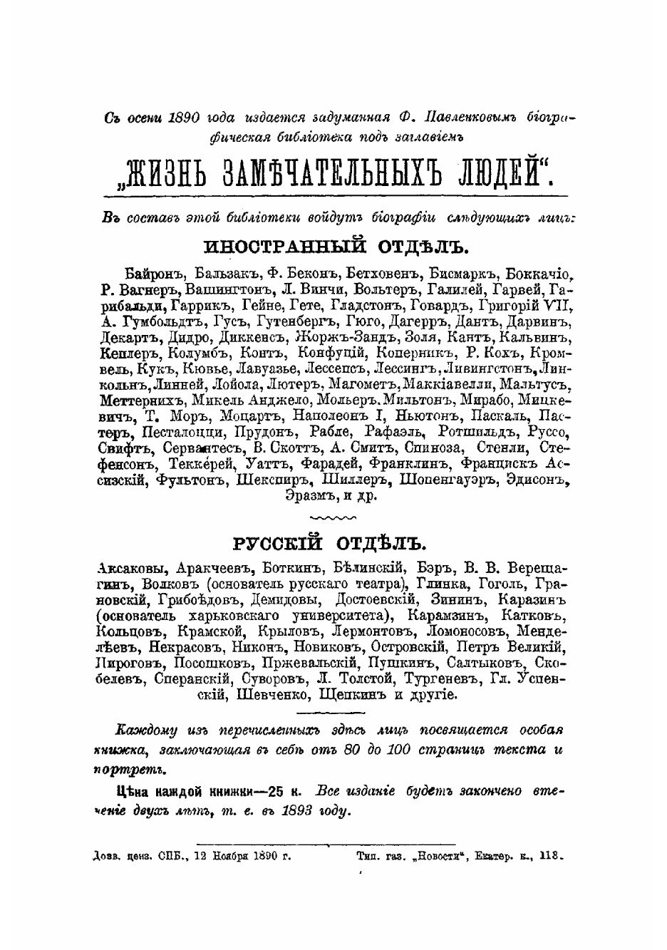 Эта книга — репринт оригинального издания (издательство "Санкт-Петербург: типография газета "Новости"", 1891 год), созданный на основе электронной копии высокого разрешения, которую очистили и обработали вручную, сохранив структуру и орфографию оригинального издания. Редкие, забытые и малоизвестные книги, изданные с петровских времен до наших дней, вновь доступны в виде печатных книг.