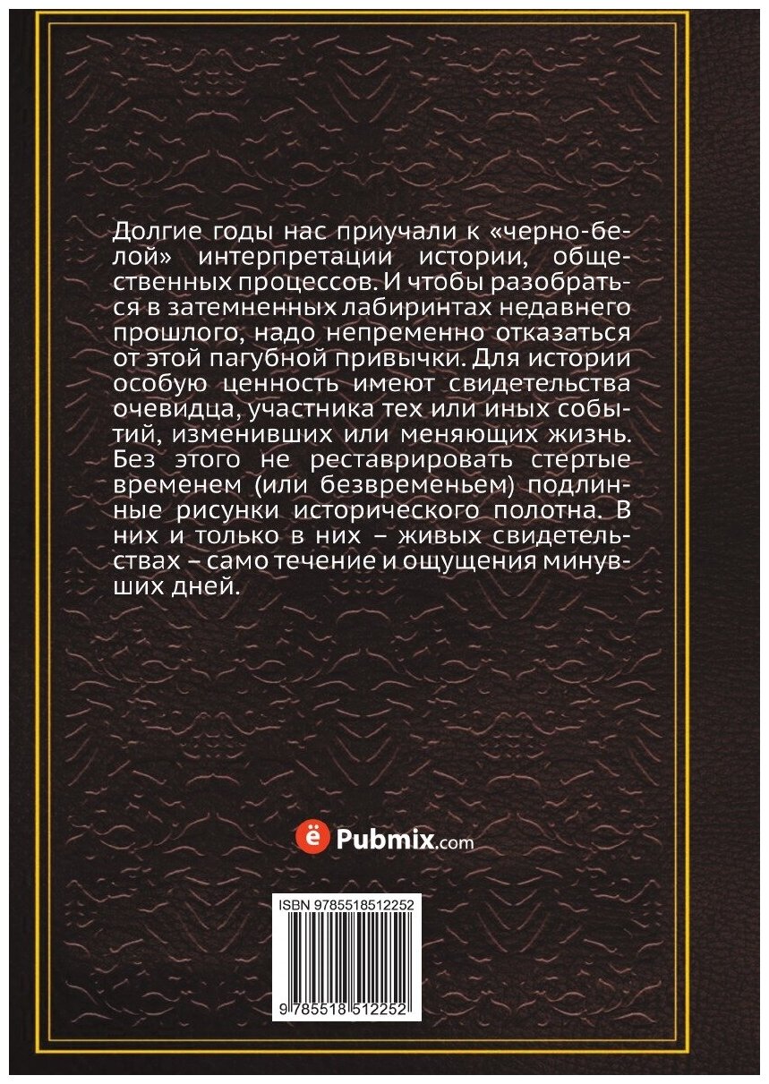 Долгие годы нас приучали к «черно-белой» интерпретации истории, общественных процессов. И чтобы разобраться в затемненных лабиринтах недавнего прошлого, надо непременно отказаться от этой пагубной привычки. Для истории особую ценность имеют свидетельства очевидца, участника тех или иных событий, изменивших или меняющих жизнь. Без этого не реставрировать стертые временем (или безвременьем) подлинные рисунки исторического полотна. В них и только в них – живых свидетельствах – само течение и ощущения минувших дней.