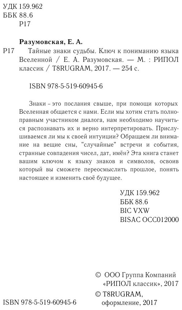 Книга Тайные Знаки Судьбы (Разумовская Елена Александровна), 2018