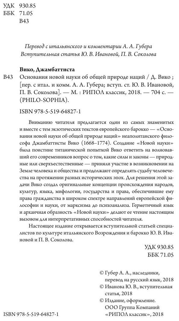 Книга Основания новой науки (Вико Джамбаттиста), 2017