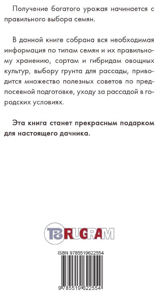 Получение богатого урожая начинается с правильного выбора семян. В данной книге собрана вся необходимая информация по типам семян и их правильному хранению, сортам и гибридам овощных культур, выбору грунта для рассады, приводится множество полезных советов по предпосевной подготовке, уходу за рассадой в городских условиях. Эта книга станет замечательным подарком для каждого настоящего дачника!Издательство T8RUGRAMМягкий переплетОбъем - 224 стр.Формат - 148x210 мм.ISBN 978-5-519-62255-4Год издания: 2018