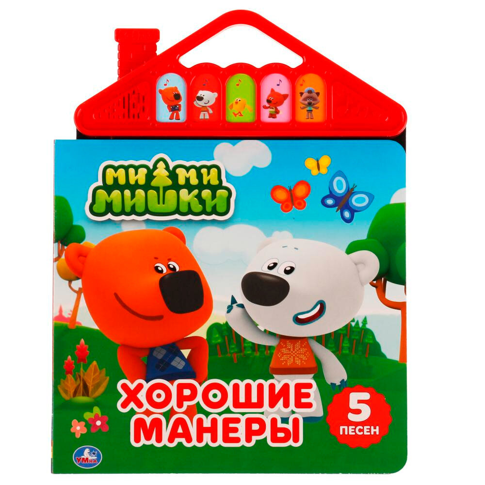 Музыкальная книга «Ми-ми-мишки. Хорошие манеры» ТМ «УМка» станет прекрасным подарком для маленьких поклонников мультсериала про весёлых медвежат и их друзей: звуковой модуль в виде крыши 5 кнопок с 5-ю песнями из м/ф, увлекательный сюжет по мотивам м/ф, красочные иллюстрации, кнопка Вкл./Выкл. Малыш с удовольствием будет листать плотные страницы, рассматривать яркие картинки, читать вместе с родителями про приключения любимых персонажей, а также нажимать на красочные кнопки и слушать весёлые песенки. Оригинальный дизайн музыкального модуля, сделанного в виде домика, непременно привлечёт внимание ребёнка и сделает игру с книгой ещё более интересной. Работает от 3-х батареек типа LR44 (в комплекте). Рекомендовано детям старшего дошкольного возраста.