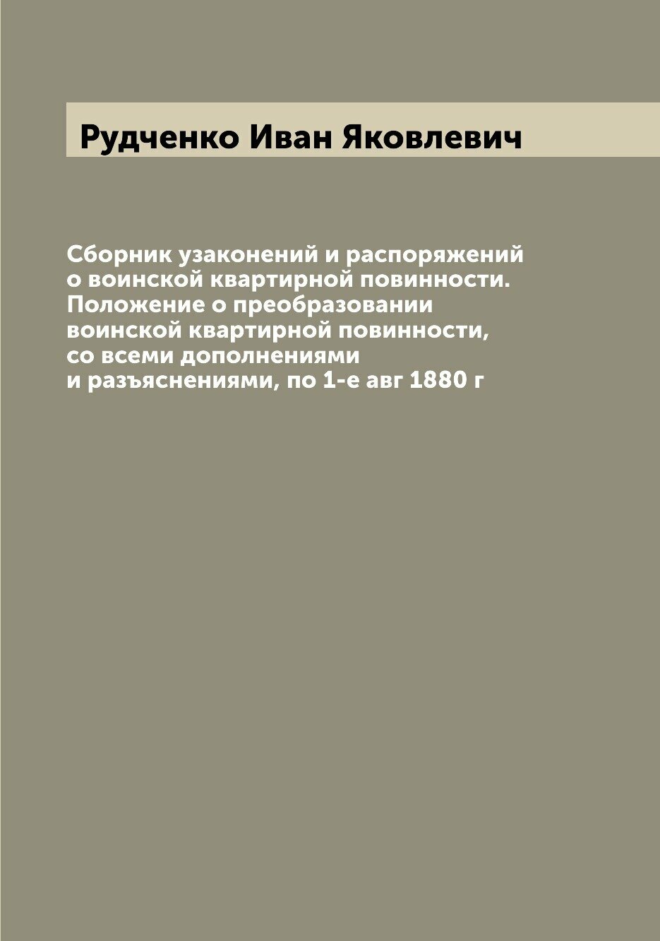 Сервис сравнения цен СкидкаГИД предлагает сравнить цены на товар «Книга: Книга Сборник узаконений и распоряжений о воинской квартирной повинности. Положение о п... (Рудченко Иван Яковлевич), 2022»