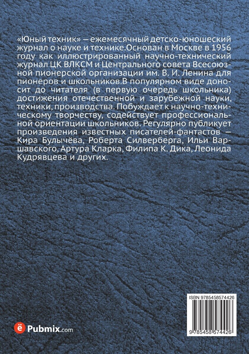 «Юный техник» — ежемесячный детско-юношеский журнал о науке и технике.Основан в Москве в 1956 году как иллюстрированный научно-технический журнал ЦК ВЛКСМ и Центрального совета Всесоюзной пионерской организации им. В. И. Ленина для пионеров и школьников.В популярном виде доносит до читателя (в первую очередь школьника) достижения отечественной и зарубежной науки, техники, производства. Побуждает к научно-техническому творчеству, содействует профессиональной ориентации школьников. Регулярно публикует произведения известных писателей-фантастов — Кира Булычёва, Роберта Силверберга, Ильи Варшавского, Артура Кларка, Филипа К. Дика, Леонида Кудрявцева и других.