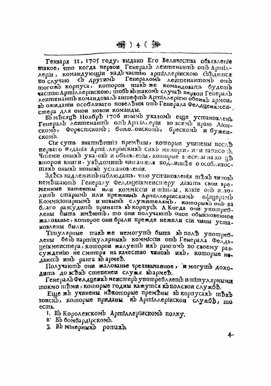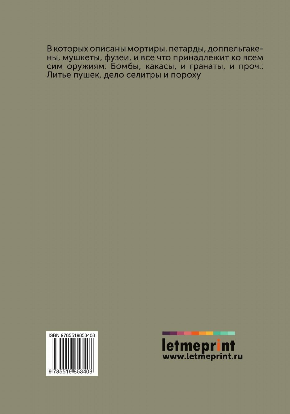 В которых описаны мортиры, петарды, доппельгакены, мушкеты, фузеи, и все что принадлежит ко всем сим оружиям: Бомбы, какасы, и гранаты, и проч.: Литье пушек, дело селитры и пороху
