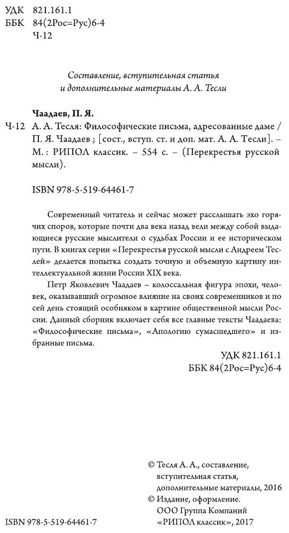 Книга Философические письма адресованные даме (Чаадаев Петр Яковлевич), 2017