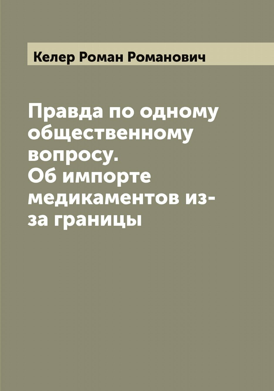 Книга Правда по одному общественному вопросу. Об импорте медикаментов из-за границы (Келер Роман Романович), 2022