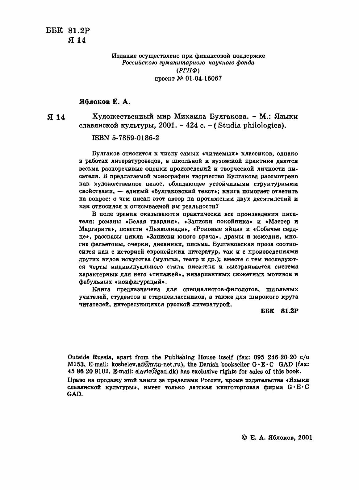Книга Художественный Мир Михаила Булгакова (Яблоков Евгений Александрович), 2001