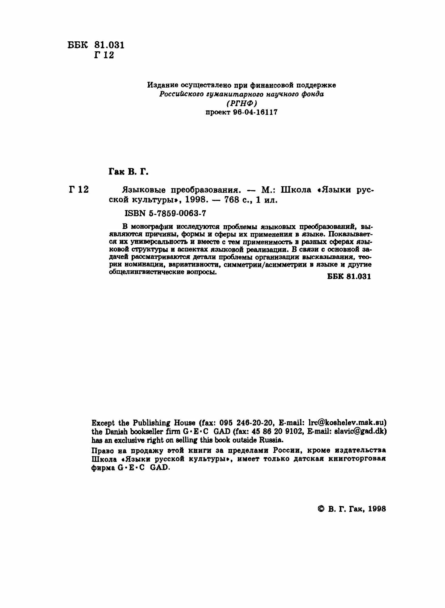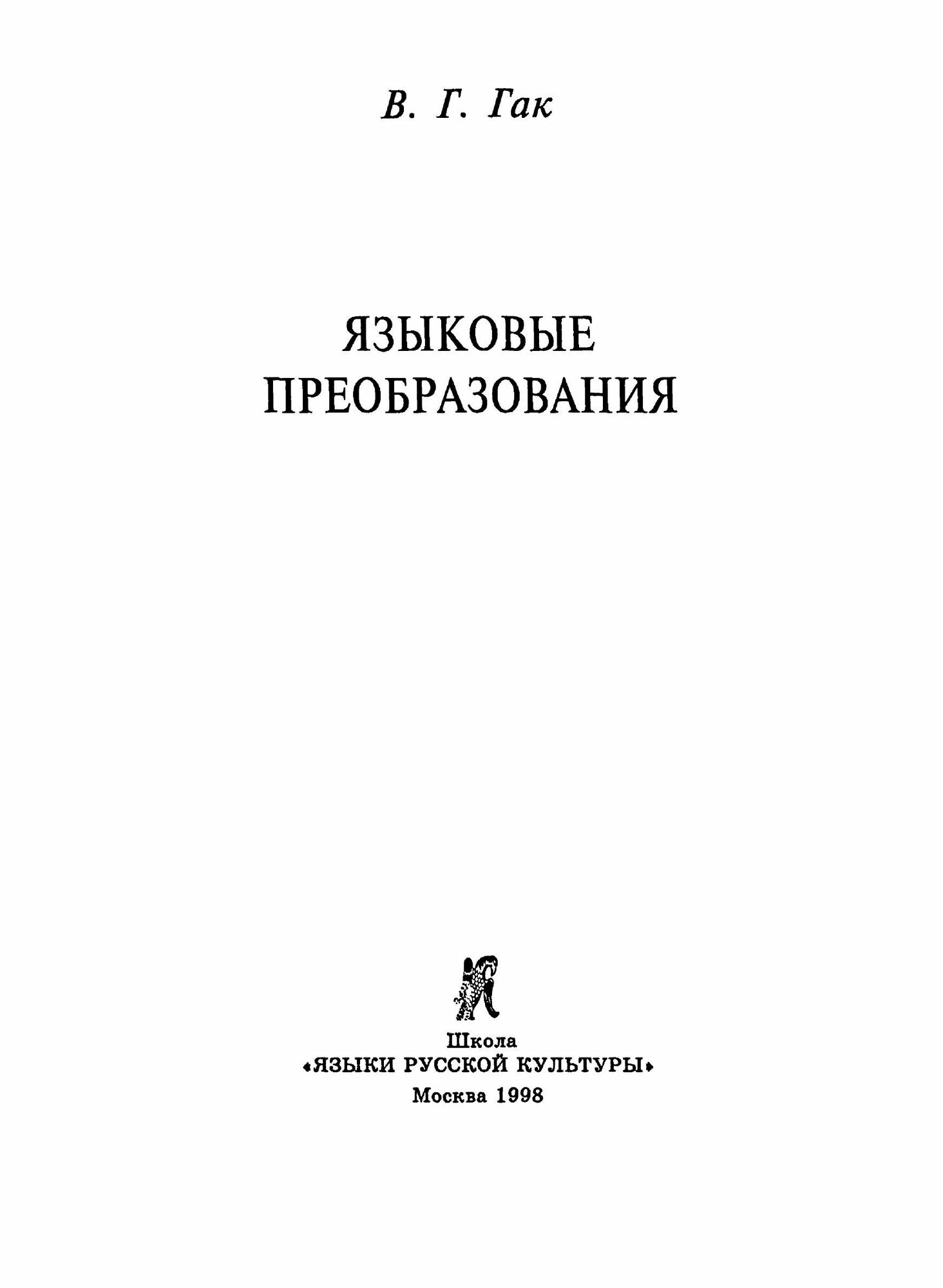 Книга: Языковые преобразования (Гак Владимир Григорьевич); Языки русской культуры, 1998