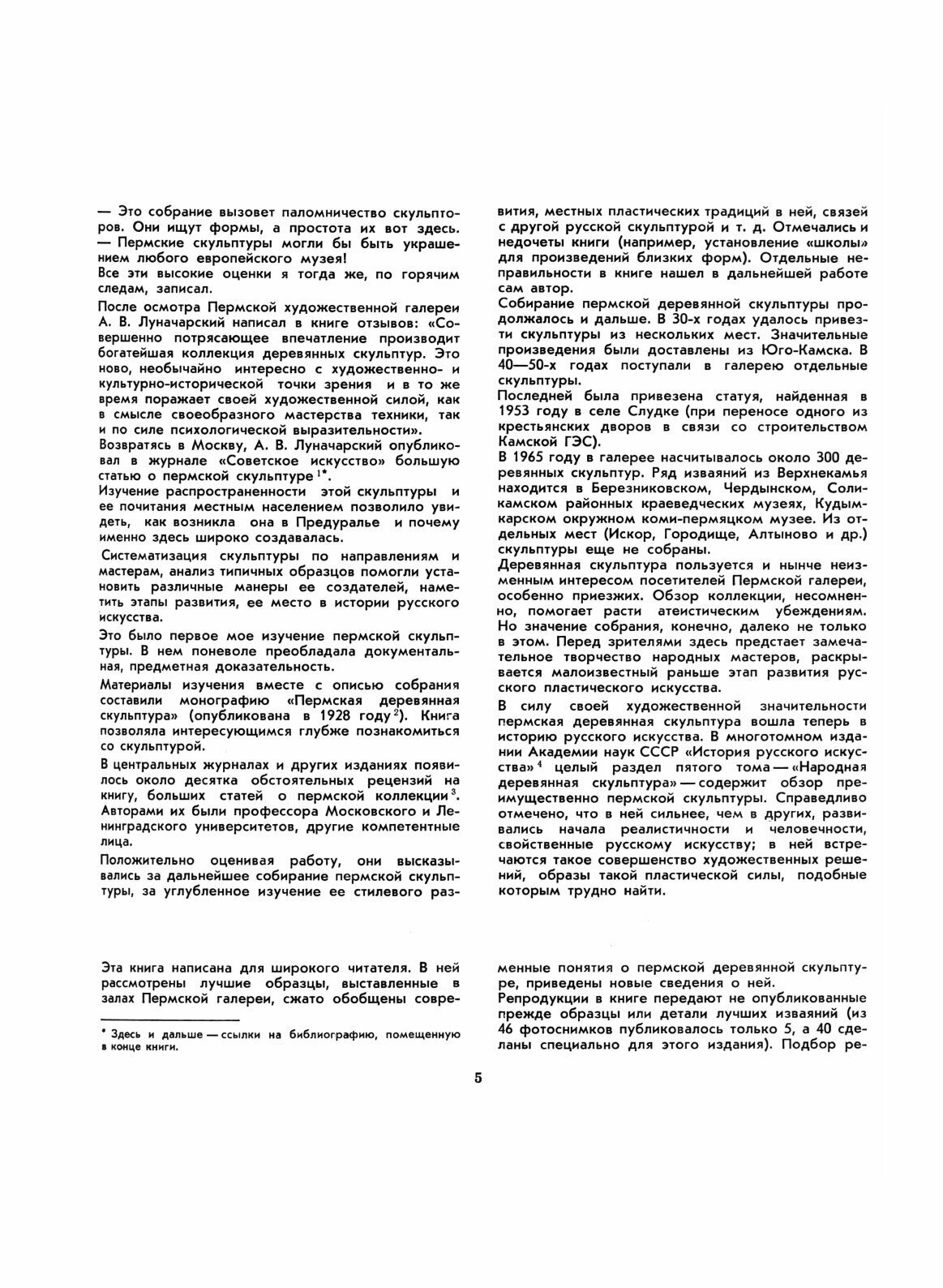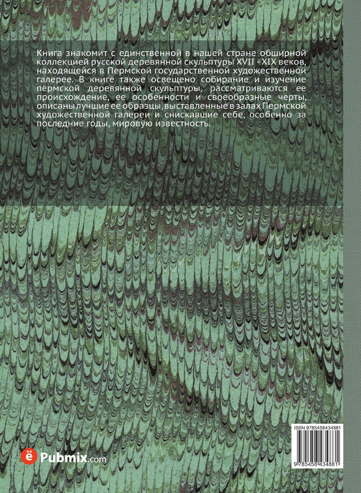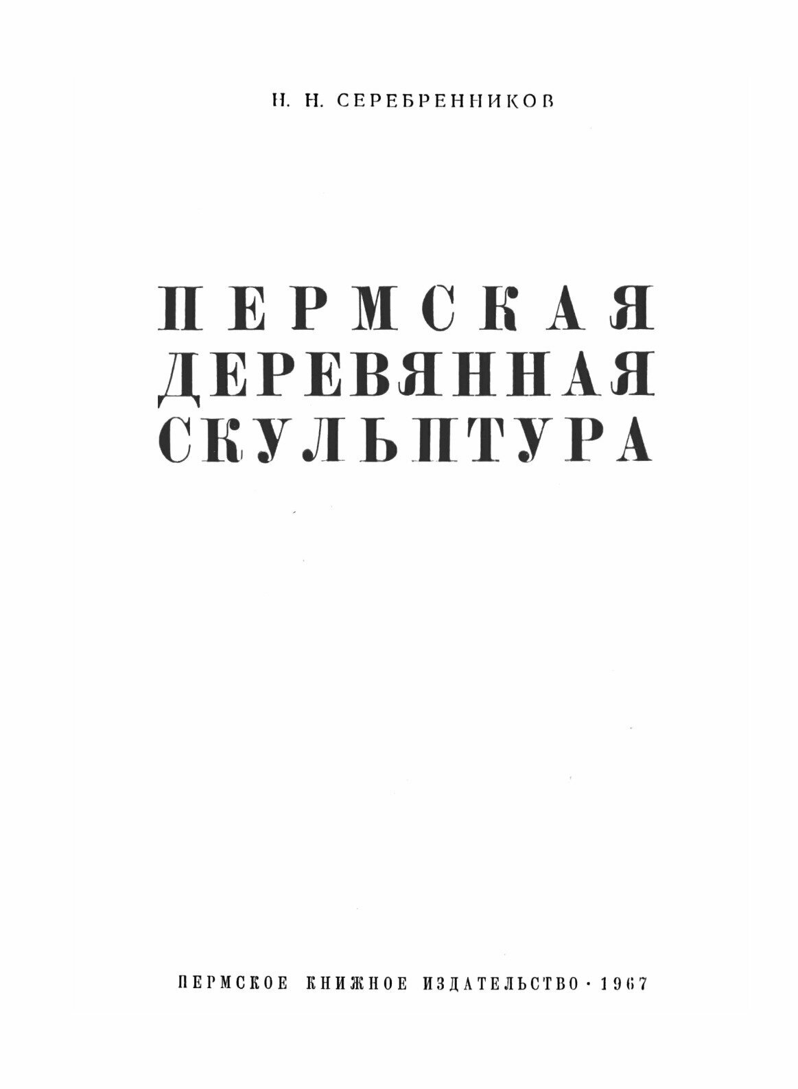 Книга знакомит с единственной в нашей стране обширной коллекцией русской деревянной скульптуры XVII - XIX веков, находящейся в Пермской государственной художественной галерее. В книге также освещено собирание и изучение пермской деревянной скульптуры, рассматриваются ее происхождение, ее особенности и своеобразные черты, описаны лучшие ее образцы, выставленные в залах Пермской художественной галереи и снискавшие себе, особенно за последние годы, мировую известность.