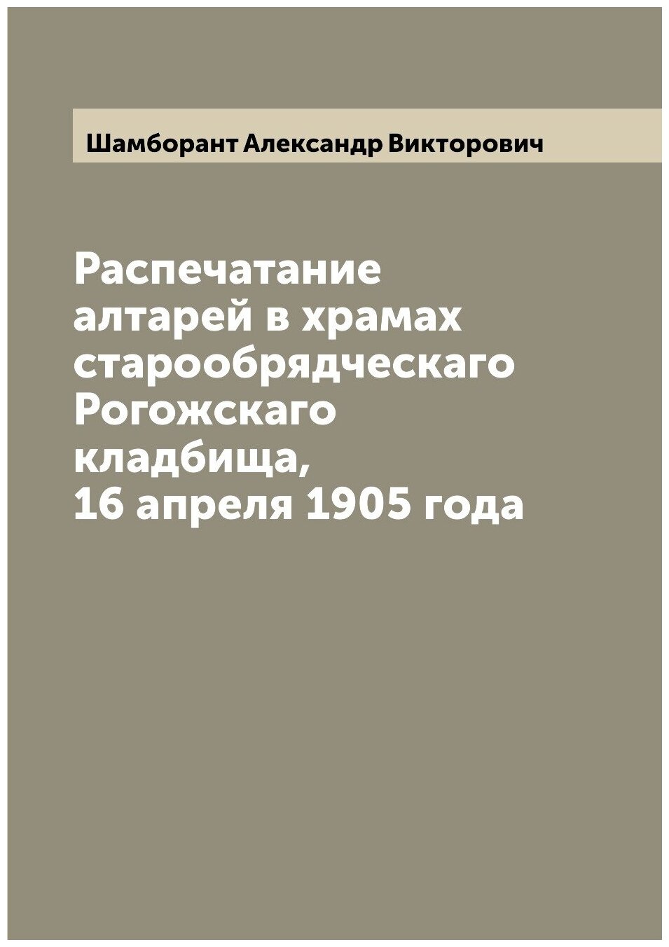 Книга Распечатание алтарей в храмах старообрядческаго Рогожскаго кладбища 16 апреля 19... (Шамборант Александр Викторович), 2022