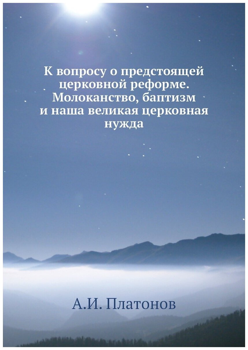 Книга К вопросу о предстоящей церковной реформе. Молоканство баптизм и наша великая це... (Платонов Александр Измайлович), 2012