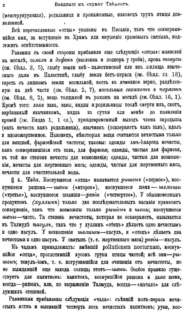 Шестой отделъ Мишны трактует о так называемой левитской (от книги "Левит") или ритуальной нечистоте. По смыслу библейского слова, состояние этой чистоты требовалось при посещении Храма (обязательном для не-священников только по праздникам) или при вкушении святынь (обязательном для не-священников только накануне Пасхи).