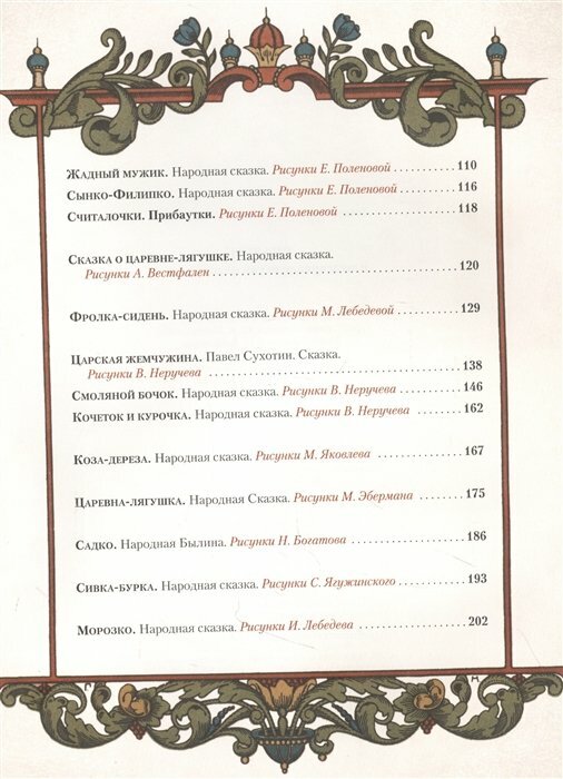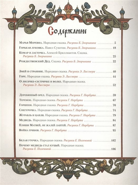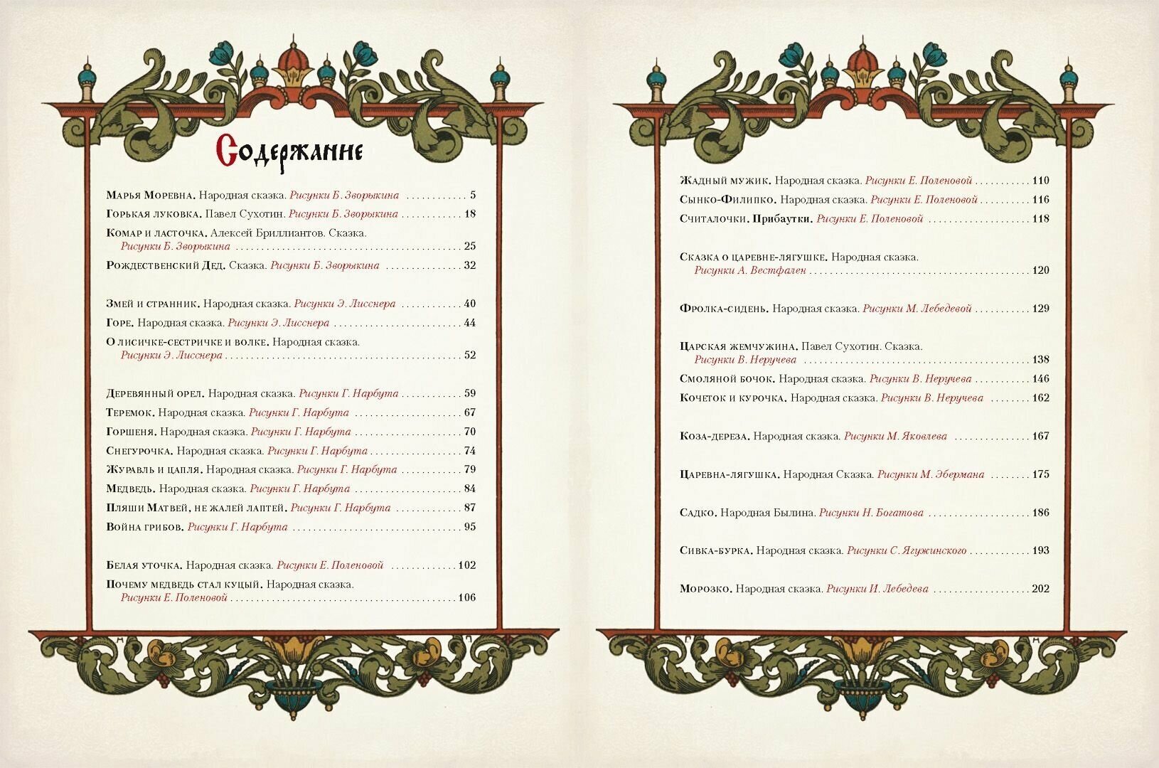 "Садко", "Сивка-Бурка", "Марья Моревна", "Снегурочка". - 30 русских сказок предстают перед нами с редкими иллюстрациями мастеров книжной графики XIX - начала XX века. Георгий Нарбут (1886-1920), Елена Поленова (1850-1898), Эрнст Лисснер (1874-1941), Борис Зворыкин (1872-1942) и многие другие - до революции их работы были не менее известны, чем знаменитые иллюстрации Ивана Билибина. Сегодня же оформленные ими книги стали коллекционными редкостями. Большинство иллюстраций, представленных в издании, возвращаются впервые за целое столетие - как и некоторые русские сказки, практически неизвестные современному читателю: "Деревянный орел", "Царская жемчужина", "Комар и ласточка". Составитель: В.В. Кузьмин.