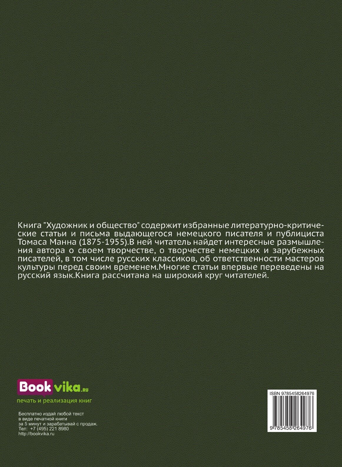 Книга "Художник и общество" содержит избранные литературно-критические статьи и письма выдающегося немецкого писателя и публициста Томаса Манна (1875-1955).В ней читатель найдет интересные размышления автора о своем творчестве, о творчестве немецких и зарубежных писателей, в том числе русских классиков, об ответственности мастеров культуры перед своим временем.Многие статьи впервые переведены на русский язык.Книга рассчитана на широкий круг читателей.