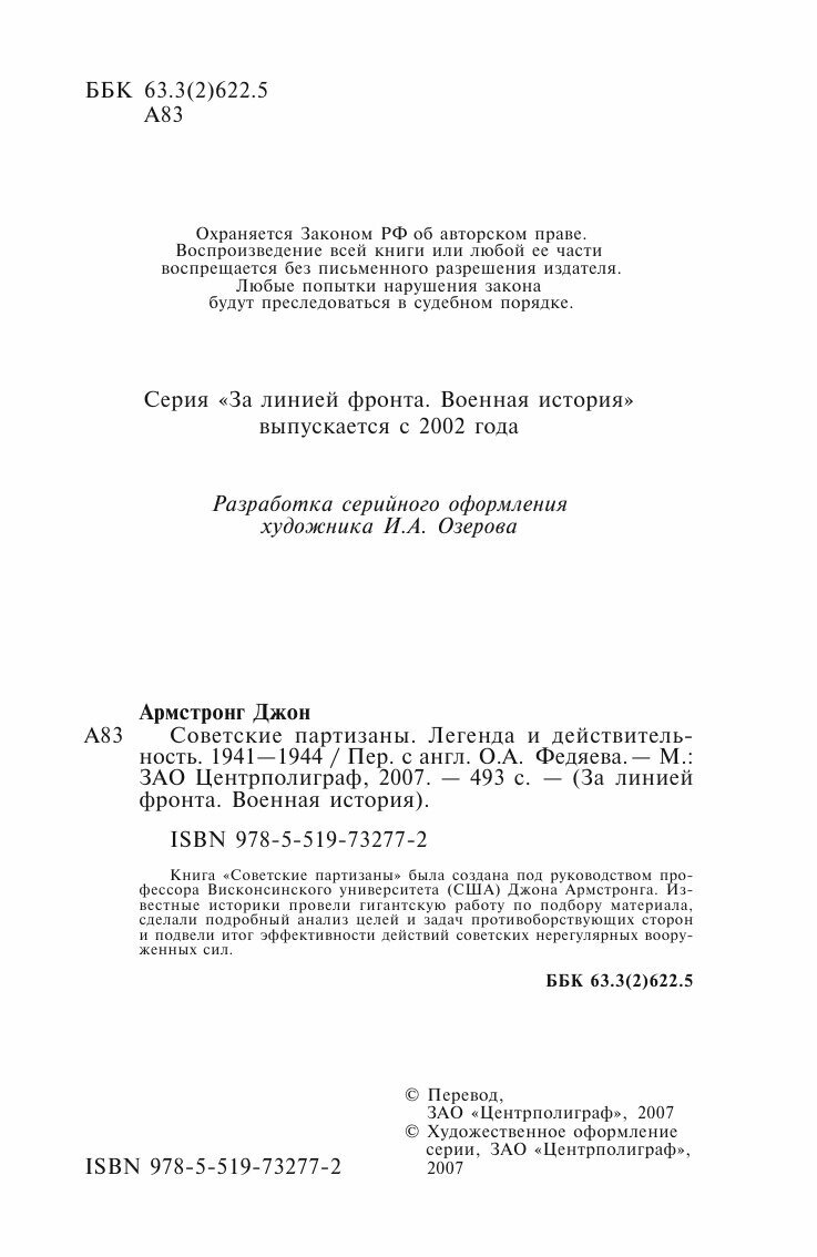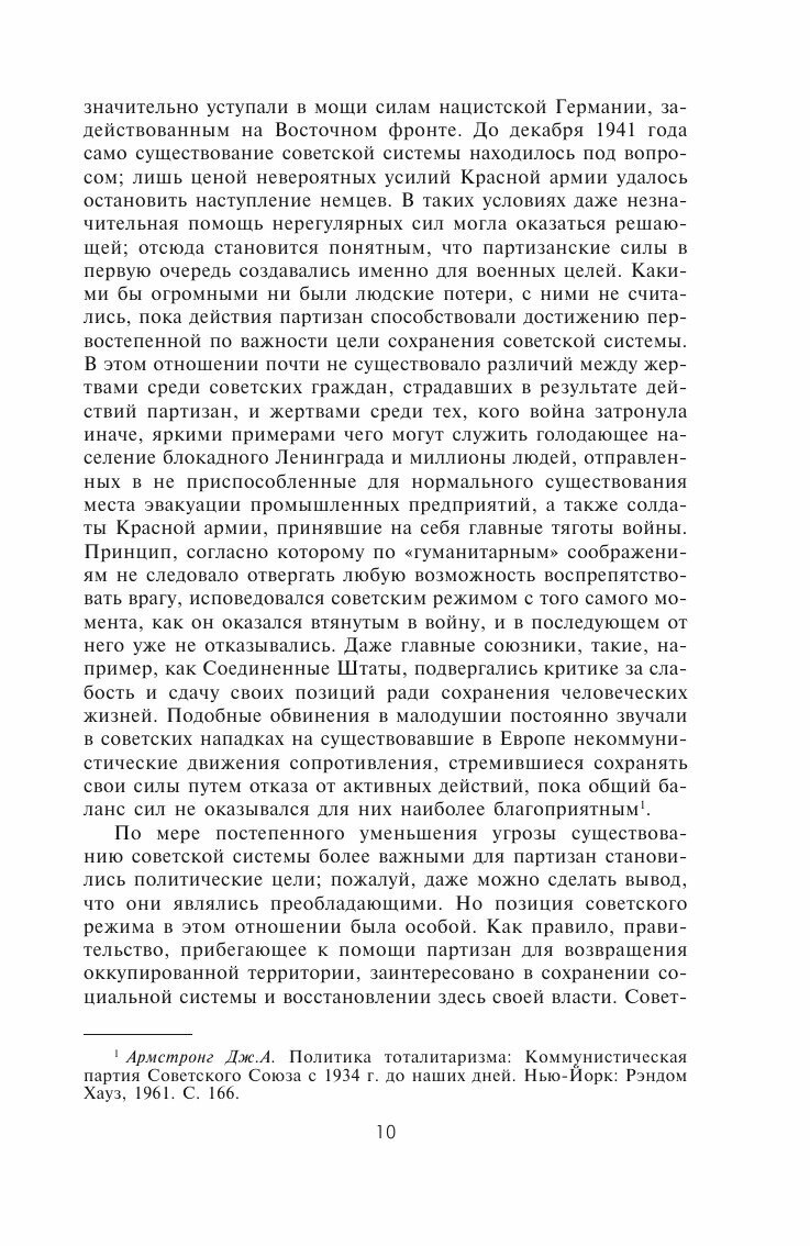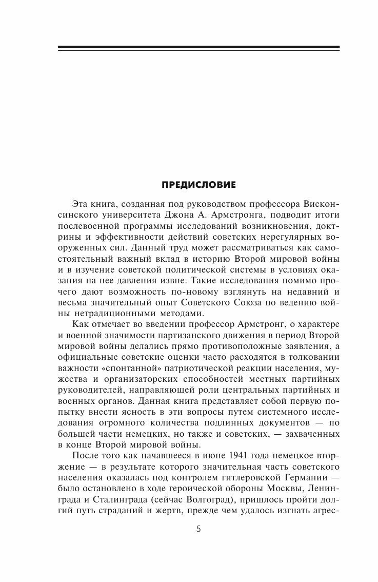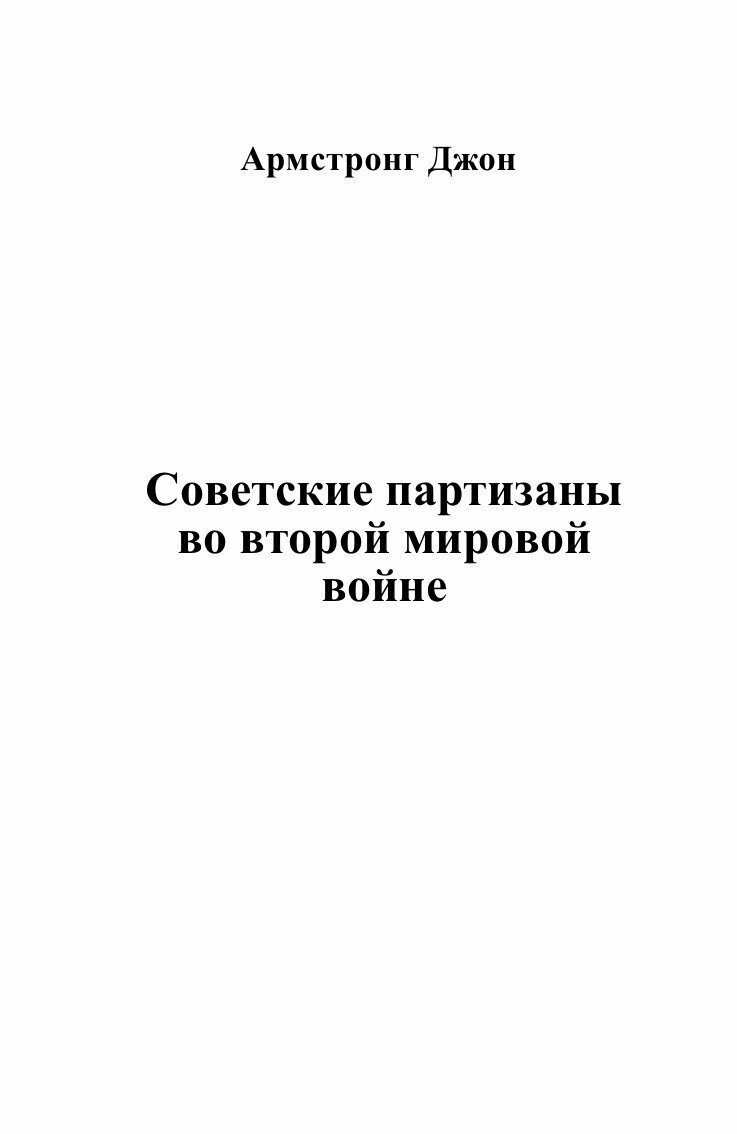 Книга «Советские партизаны» была создана под руководством профессора Висконсинского университета (США) Джона Армстронга. Известные историки провели гигантскую работу по подбору материала, сделали по-дробный анализ целей и задач противоборствующих сторон и под-вели итог эффективности действий советских нерегулярных воору-женных сил.