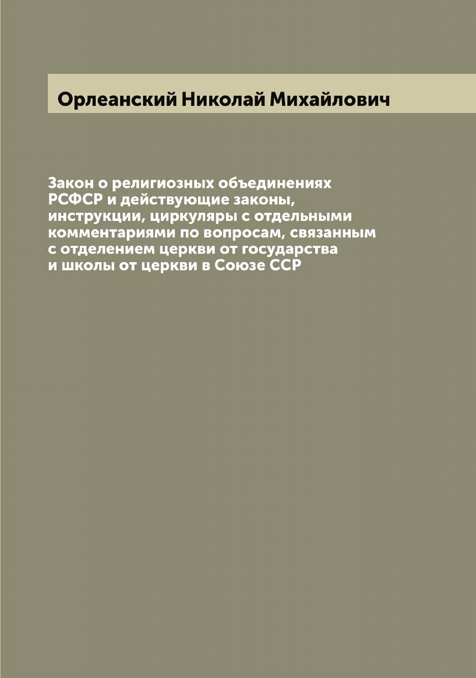 Книга Закон о религиозных объединениях РСФСР и действующие законы инструкции циркуляр... (Орлеанский Николай Михайлович), 2022