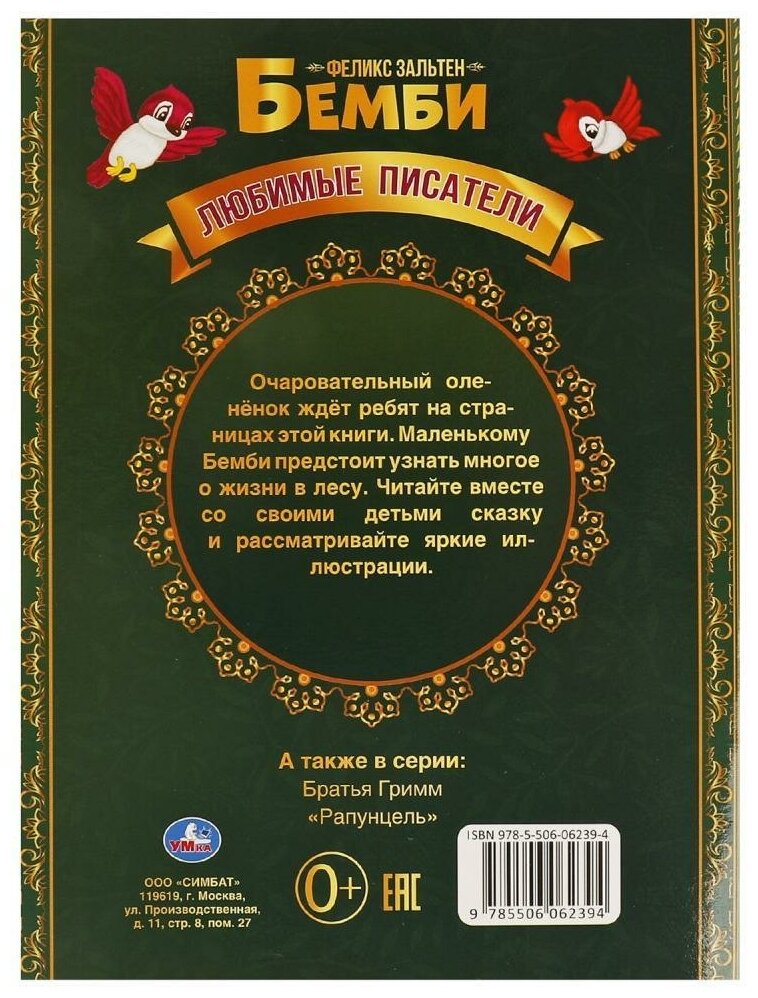 Эта повесть австрийского писателя Феликса Зальтена расскажет маленькому читателю удивительную историю оленёнка Бемби, которому предстоит знакомство с лесом и его обитателями. Ребёнок с удовольствием погрузится в чтение такой увлекательной и трогательной книги, а красочное оформление сделает этот процесс ещё более приятным занятием.