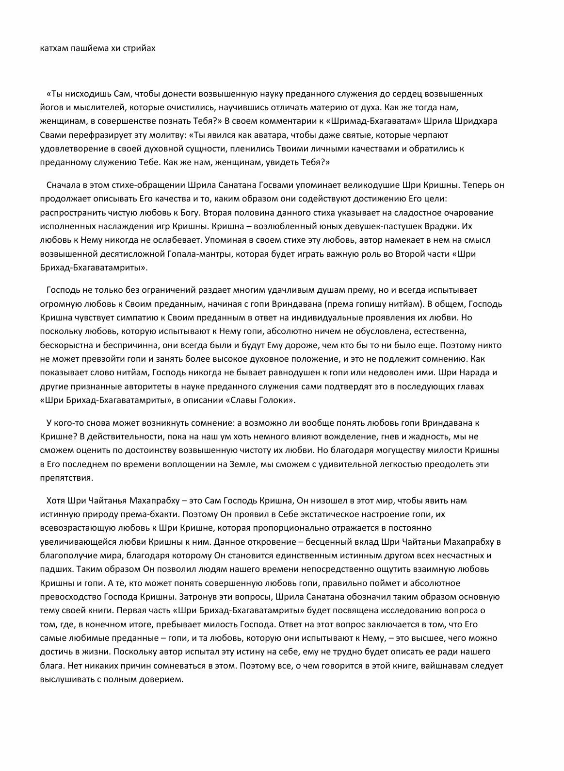 Перевод с санскрита и комментарии Шримана Гопипарандханы прабху, на русском языке.