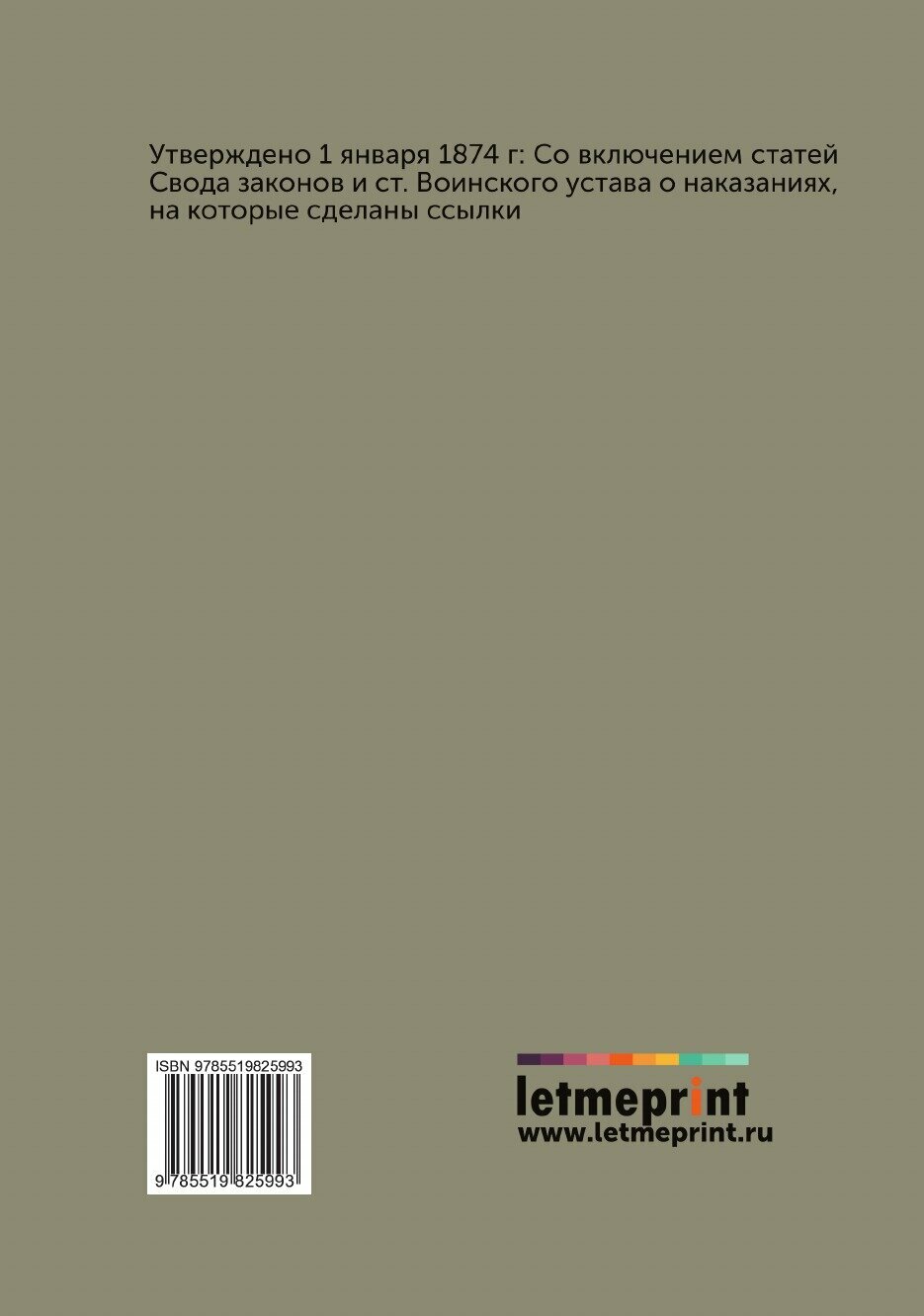 Утверждено 1 января 1874 г: Со включением статей Свода законов и ст. Воинского устава о наказаниях, на которые сделаны ссылки