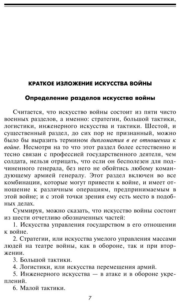 Барон Генрих Жомини начал военную карьеру в Швейцарии, затем посту¬пил во французскую армию, участвовал в наполеоновских походах, был начальником штаба маршала Нея, а в 1813 г. перешел на службу в русскую армию. Подробно рассматривая все аспекты, присущие теории и практике войны, Жомини предлагает анализ стратегических проблем, сопутствующих различным театрам и полям боевых действий, тактики наступления и обороны, неожиданных маневров, специальных операций, уделяет внимание важности разведки и развертывания сил, организации тыла и снабжения, роли инженерных сооружений и влиянию на ход военных событий дипломатии. Классический труд Жомини не только неоценимый исторический памятник, но и непревзойденное фундаментальное исследование по стратегии и тактике ведения войны, высоко оцененное специалистами и, безусловно, интересное для всех, кого волнует история развития военной мысли.
